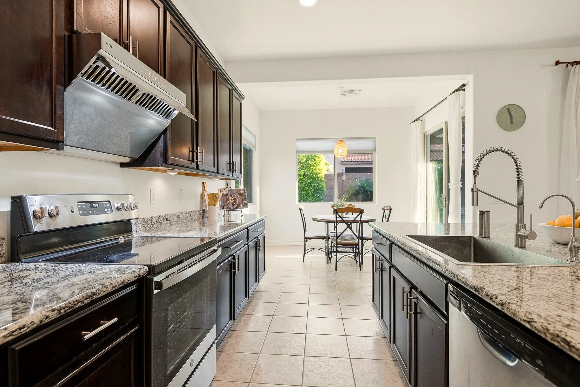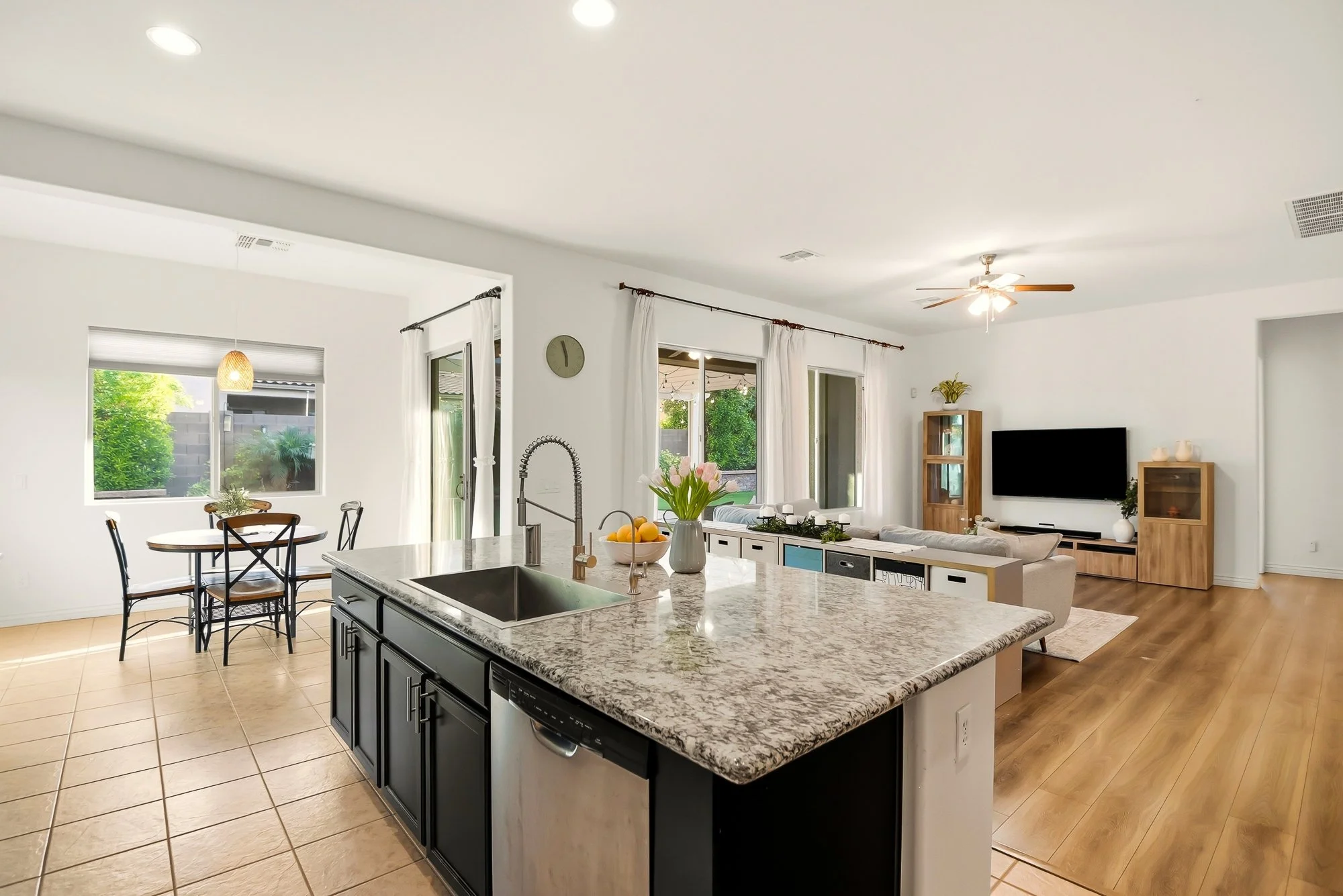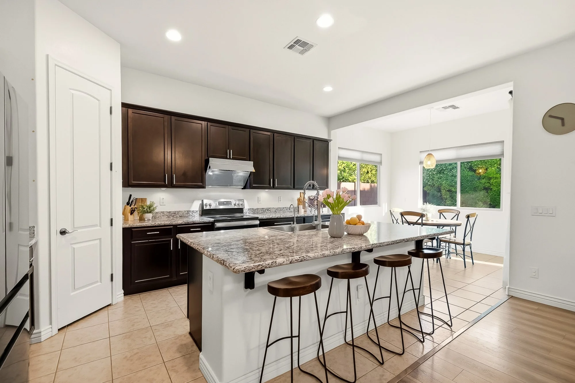 This thoughtfully designed single-level home offers comfortable living with a layout that makes everyday life feel easy and connected. The spacious kitchen features granite countertops, a large island with bar seating, and an updated designer range hood, all flowing into bright, open living and dining areas that are great for gathering or relaxing.