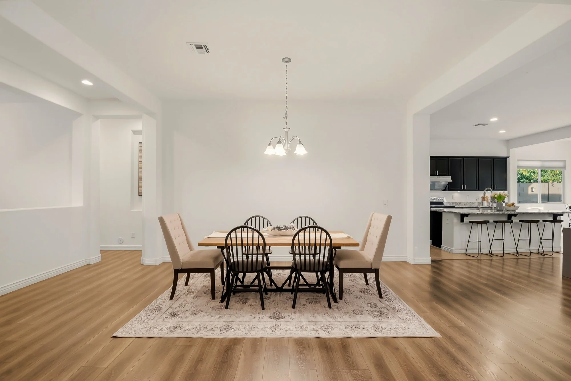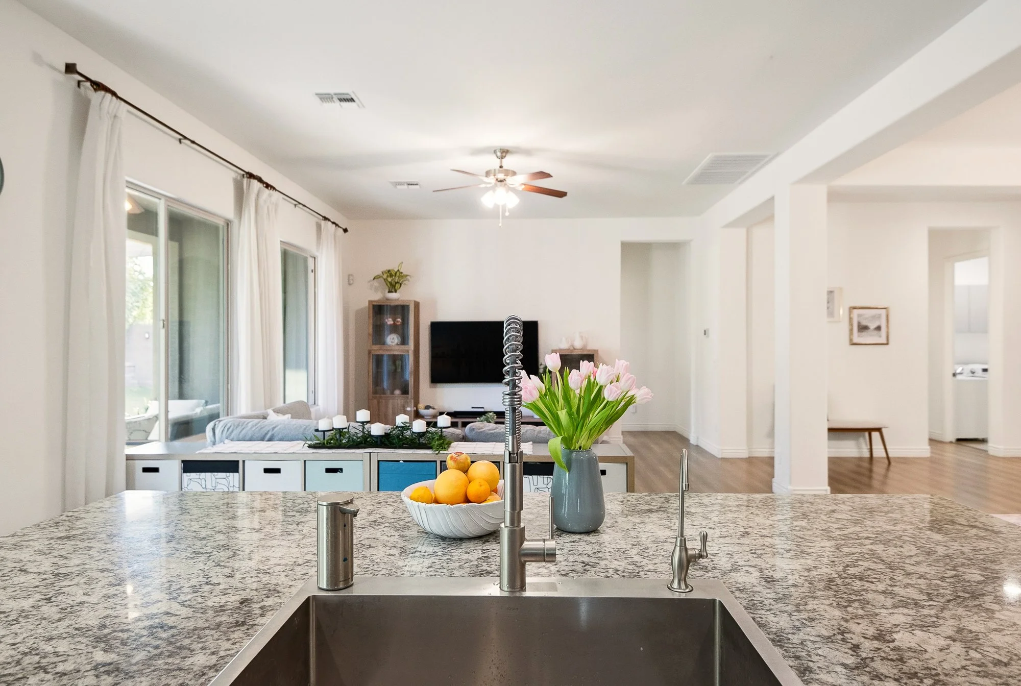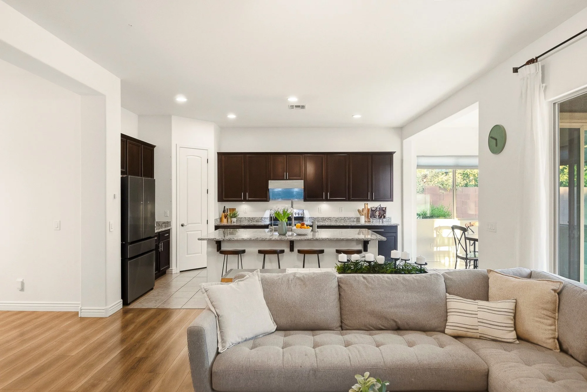 This thoughtfully designed single-level home offers comfortable living with a layout that makes everyday life feel easy and connected. The spacious kitchen features granite countertops, a large island with bar seating, and an updated designer range hood, all flowing into bright, open living and dining areas that are great for gathering or relaxing.
